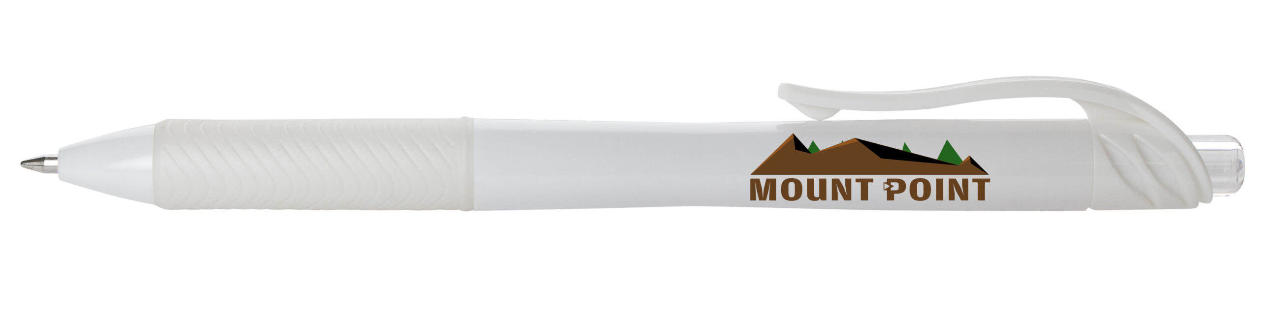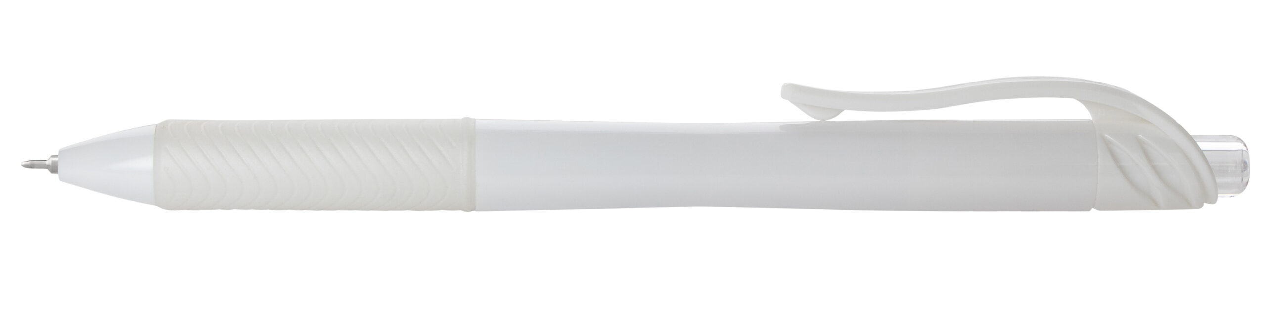 Pentel EnerGel-X Retractable Gel Ink Pen/white barrel with choice of 9 colors of accent trim. 0.7mm medium black ink metal tip refill is standard, latex-free comfort grip and quick dry, no smear super smooth writing. Made with eco-friendly 84% recycled materials. Prices include a one color or full color imprint (see price options). Blue pen only available with blue or black ink, blue ink refills available with other colors with an additional charge.